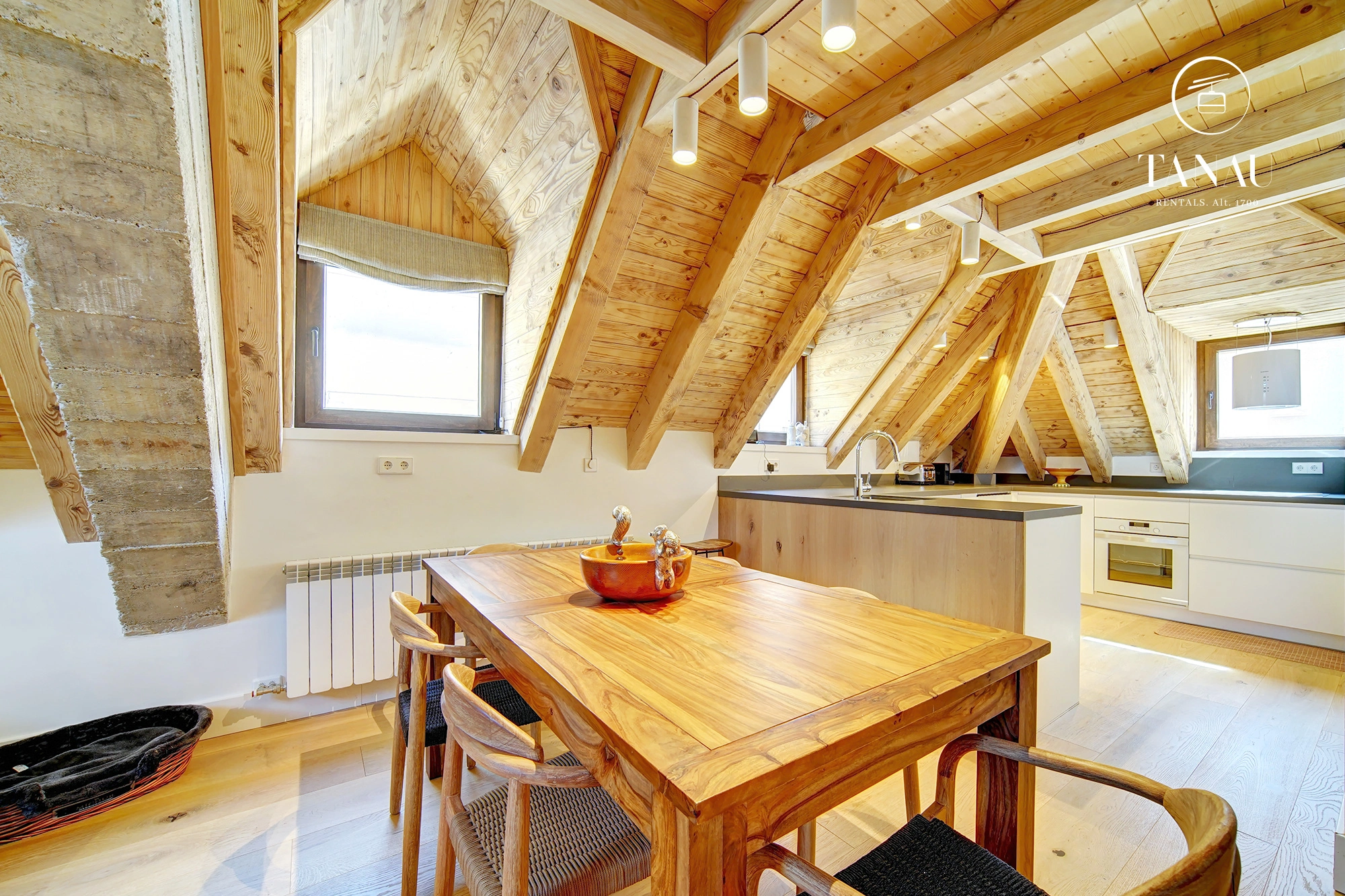 Imagina despertar en una de las acogedoras habitaciones, disfrutar de un desayuno en la moderna cocina abierta que se integra con un amplio salón, todo ello rodeado por la majestuosa belleza de la montaña.